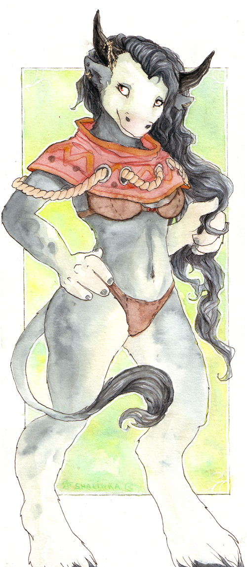 This is a random bovine girl. Done in watercolors (and some color pencil) on a awesome paper héhé.