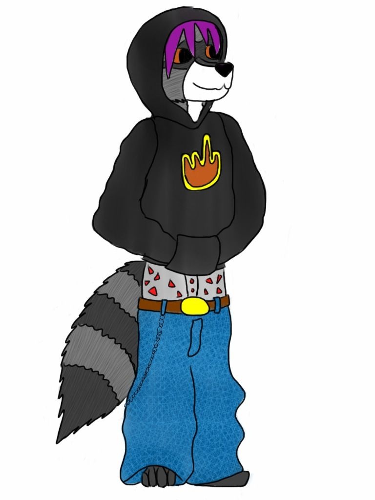 This character was born from the Sewer Maintenance pic i did; i liked him so much i decided to name him and make him one of my characters. So here we have the purple haired raccoon Kodi, dressed in his casual every day clothes as opposed to his stinky work clothes. As you may have guessed from his debut appearance his job is sewer maintenance; a job which frequently sees him being eaten by various creatures that inhabit the cities sewer network; but nevertheless he's a huge lover of all things foul and disgusting and frequently loves to dirty himself with whatever disgusting substances he can find so to him this is his dream job.