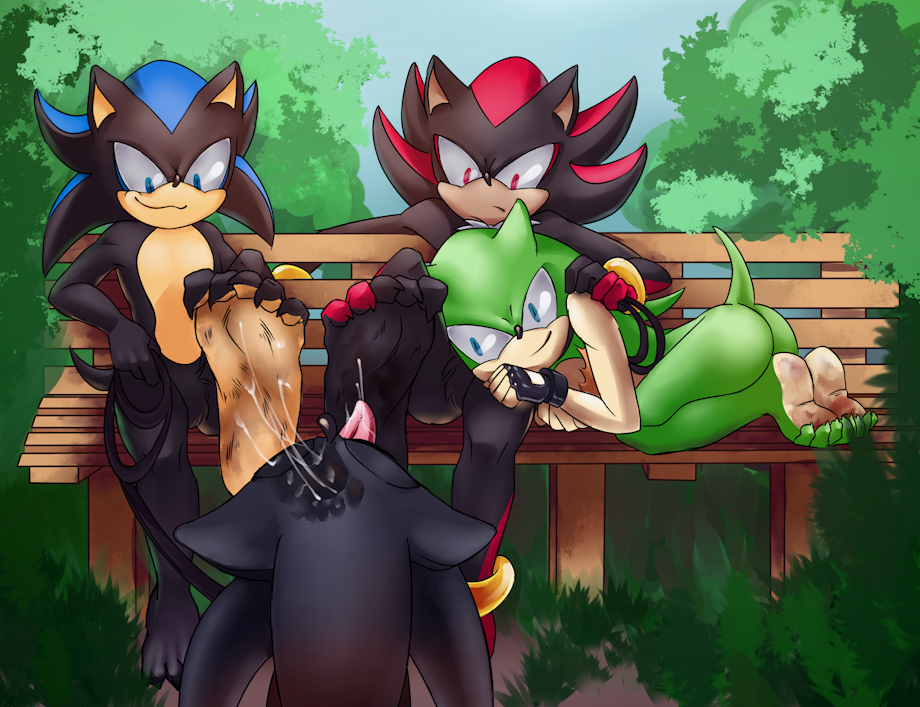 this looks so good, I love Scourge over there the most I think, he just looks so comfy. the character on the far left has muscles that look really well defined and Shadow's shoulders look amazing, it's really awesome and the tree's around them look really nice too and the perspective of the park bench is absolutely perfect, great work here =D