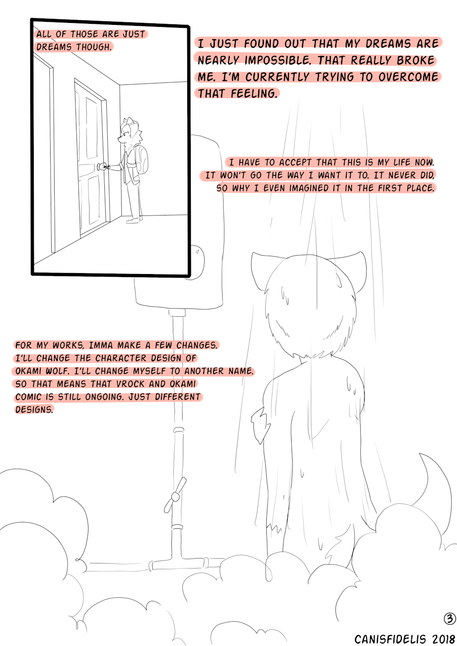 okami wolf was an idealized version of himself, flaws removed, positive traits enhanced he intends this new charicter to reflect himself unfiltered no embelishments, no hideing flaws. yes it will still be a fur, but we all hide behind our fursonas here, and to some of us our fursona's are more who we are then our physical bodies.