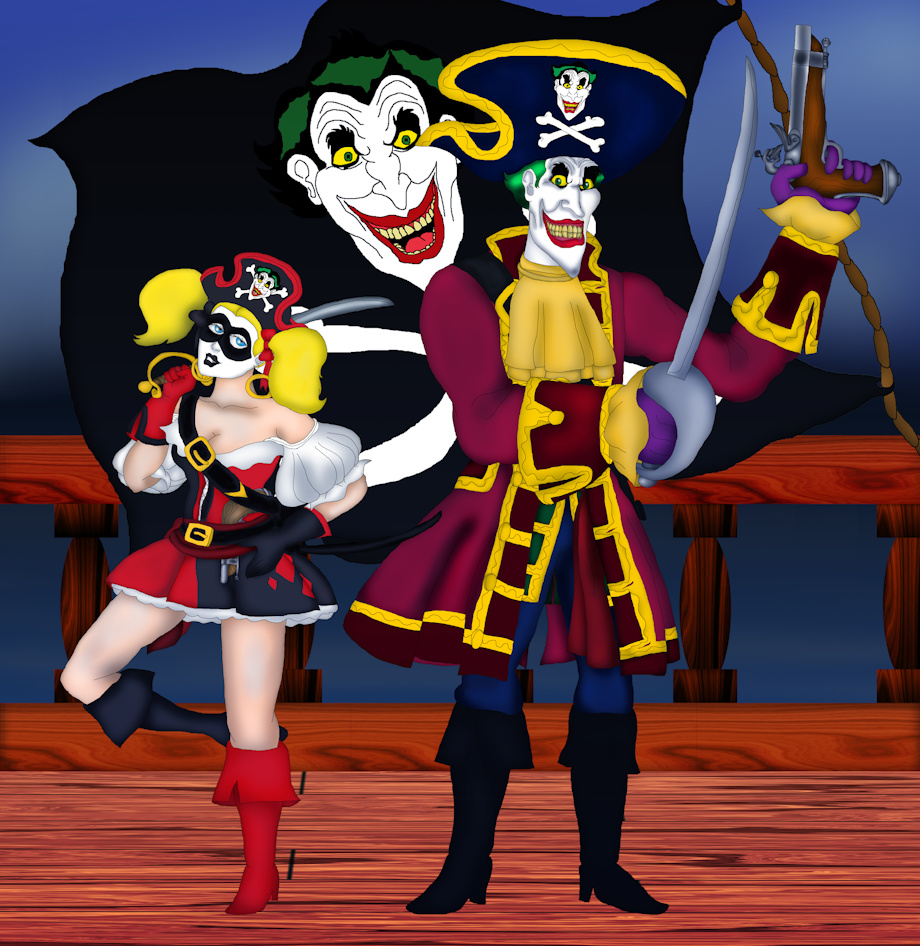 I saw an episode of 1950's Batman cartoon when I was little. It was called "Long John Joker" (catch my drift?). So I thought it would be cool to redo that idea if it were done in the DC comics Universe. So here you have the terrifying Joker as the captain and the cute, but semi insane, Harley Quinn as the first mate.