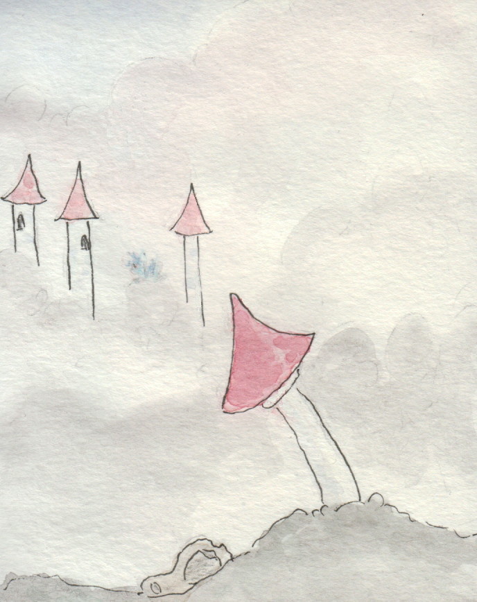 Not super happy with these clouds, though I do like the misty patches. It's satisfying to paint with empty spaces!