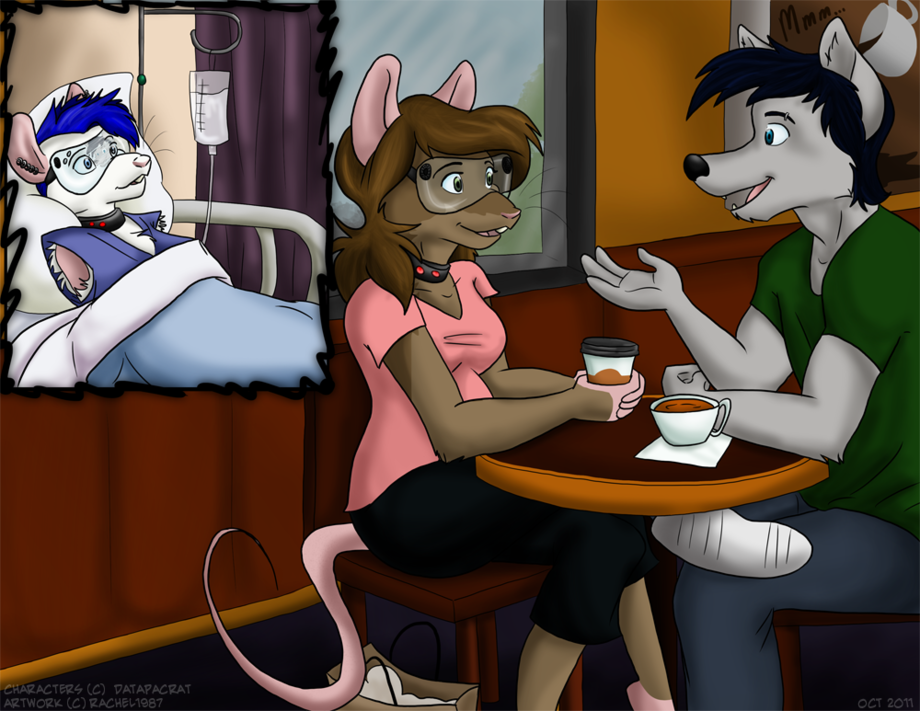This is a commission that I did for datapacrat! He asked that I draw a scene from a story that's being written about his characters by someone else.