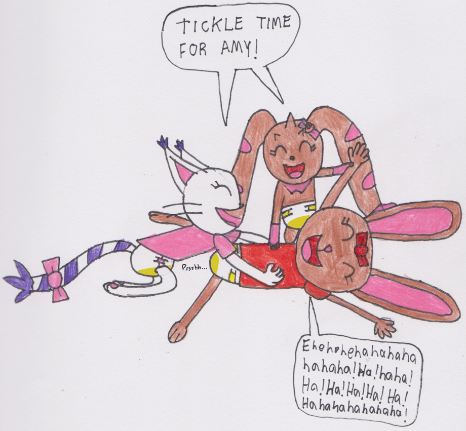 And now, Pearl & Hazel starts tickling Amy till she starts peeing her diaper!