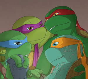 Mouths open in astonishment, Don, Mikey and Raph all turned to look at Leo, who was sheathing his katana.