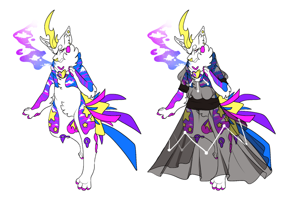 Bought this adoptable, drew him an anthro ref! He's an apprentice to a dream goddess.