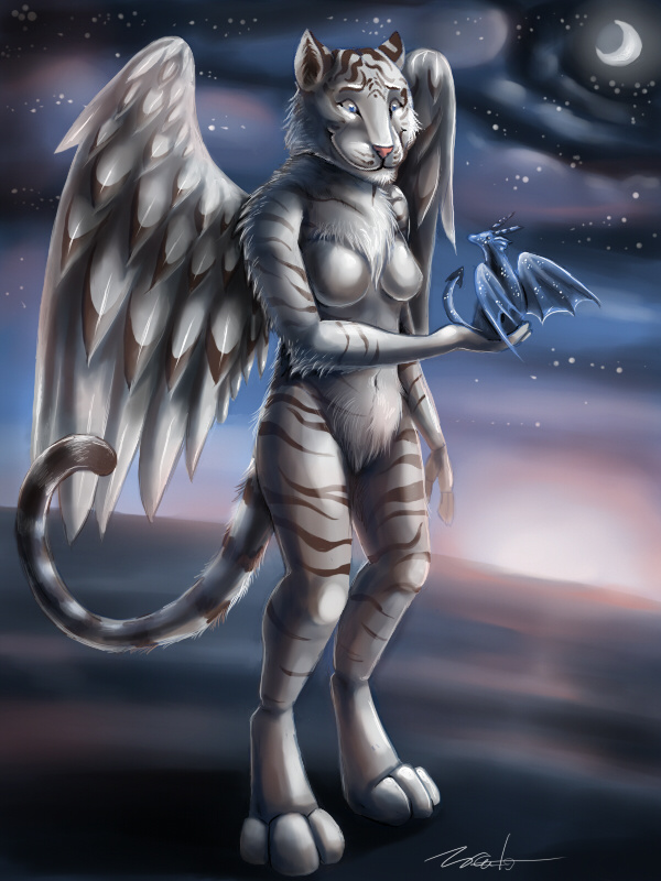 Diadexxus Finished - White tiger holding a dragon IN SPAAACE