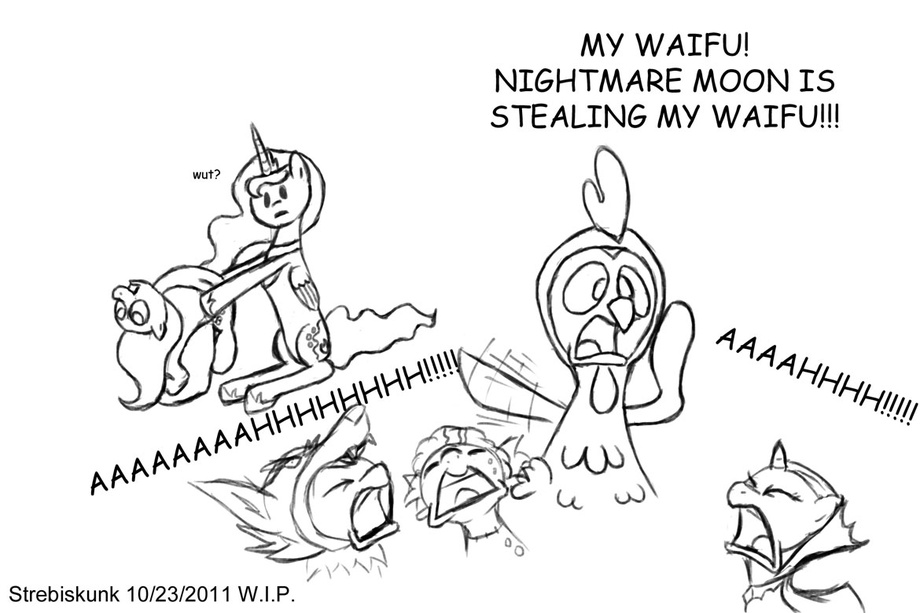 An alternate take on a scene from "Luna Eclipsed," where Luna visits Fluttershy for advice. Whether this would be true or not, this seems like something Pinkie might do anyway. Honestly, I'm a bit disappointed in Pinkie in this episode. It was established in "Griffon the Brush Off" that she makes a special point of easing up with her pranks when she knows the target is especially sensitive, and Luna had no idea she was just kidding around.
