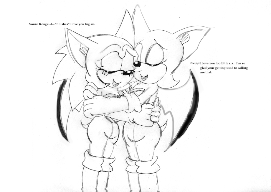 Despite the struggles Sonic has had with his new body, he wouldn't of got though them without Rouge being a big caring sister towards him/her.