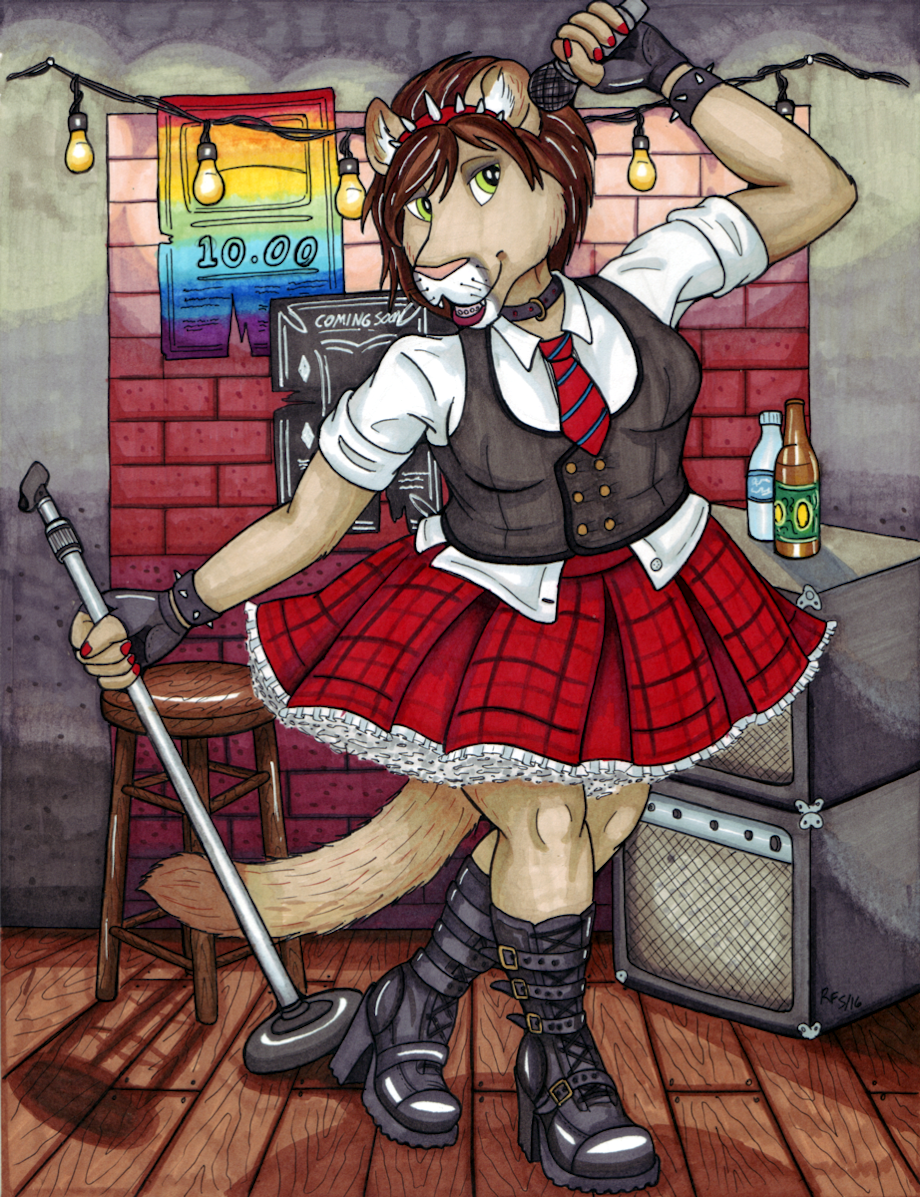 Jamey singing her heart out on stage at a little, local dive bar. I had a lot of fun drawing this one, and I hope it shows!