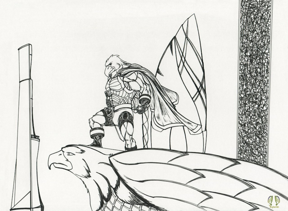 This is a bust drawing of D. Dan's ancestor, Elector Dan with a bored face. Elector Dan is a vampire and, thus, technically still alive. Unlike most vampires, Elector Dan chooses not to drink blood. He is immortal and keeps his youthful looks and strength yet, with the lack of drinking blood, has shown age in the greying of his once immaculately platinum white feathers. And, even though he is a respected by the town that he protects, he is easily bored from having done much already in his time of being a vampire since the year 1272. He is so easily bored in fact that the expression shown is a common look for him.