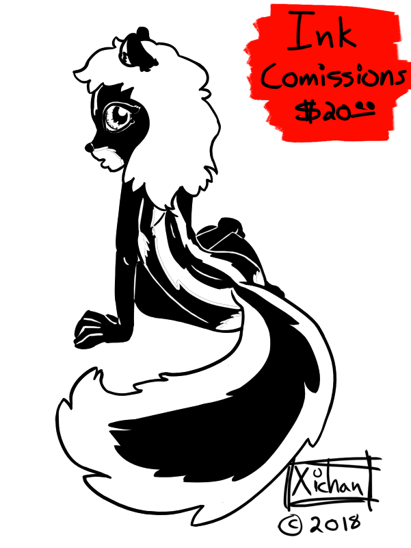 Okay, seriously though, here's a nice skunk pinup and a commission advertisement. For $20 I'll do color ready ink lineart or a finished ink only piece. PayPal only, please no scat, vore, gore.