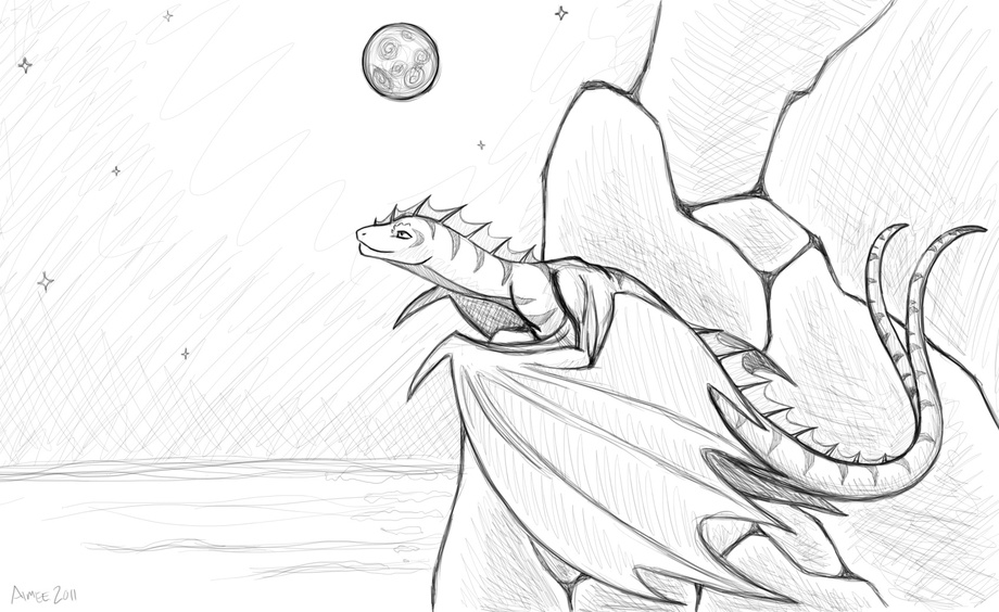 A gift art for a friend, Dagmarr. She was quite fun to draw, and though I normally draw wings raised to show off the rest of the body, this pose worked out perfectly so as to show off her fin instead. I like it when things work out like that!