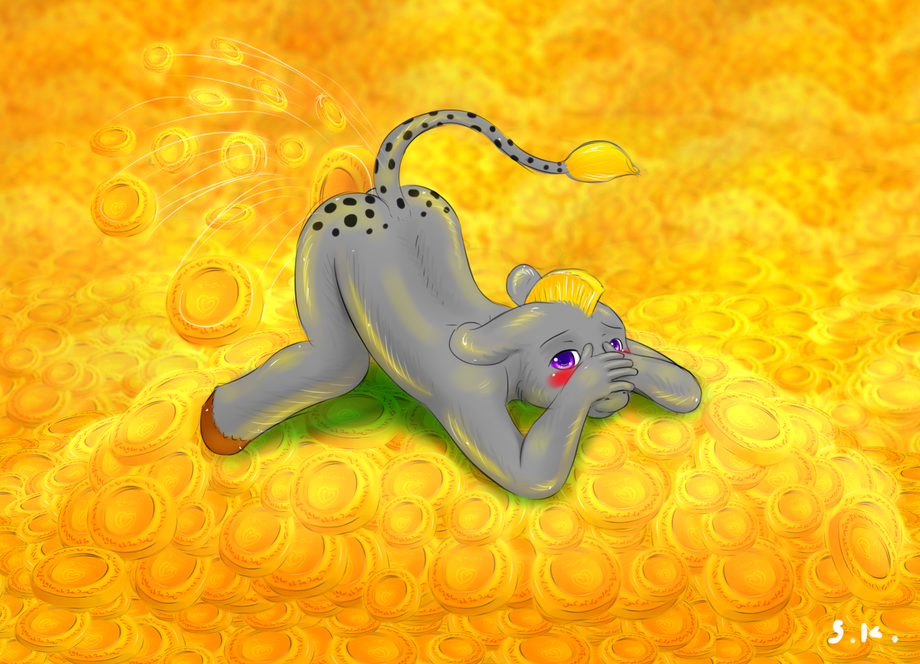 Yeah, sen wanted me to take this theme wherever I want, and I ended up with this. I hope it fits what he wanted. It wasn't supposed to look like a cub, or at least not as a small cub, and I don't think it looks like a cub. Sen is shitting gold coins, lots of gold coins, mountains of gold coins. For