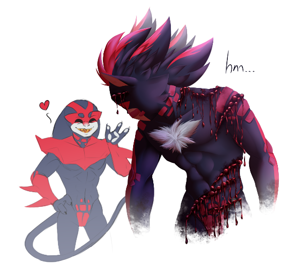 The blood in the second picture looks awful, but I do not know how. I also suggested during the drawing that the wounds caused the eclipse during their gay night ...