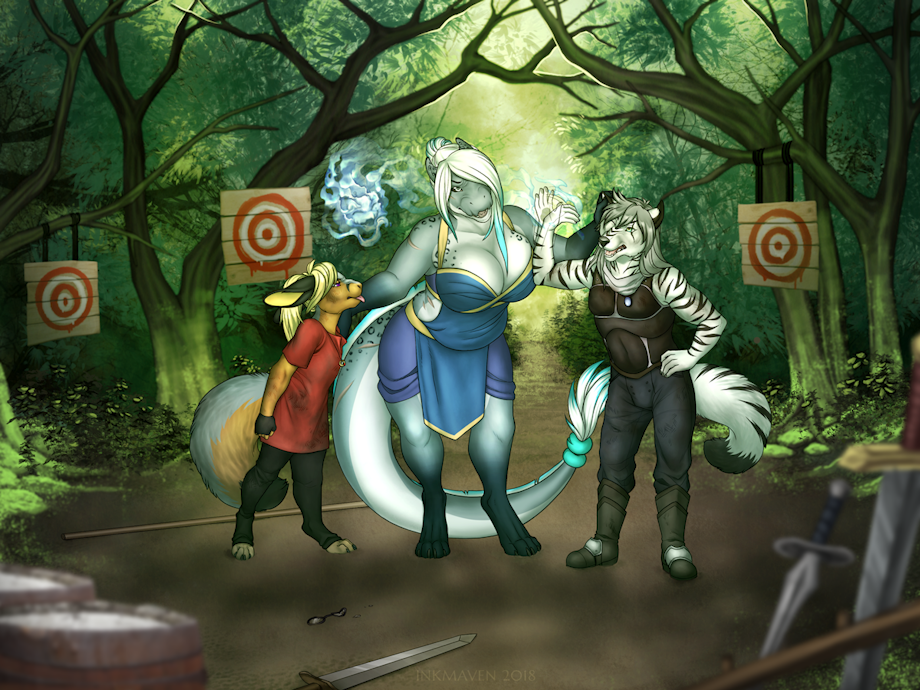 She herded the two of them out of the clearing like naughty children, but, to Emer's surprise, she saw Zal smile at her and wink. "That was fun, princess," he said "We should have a rematch sometime."