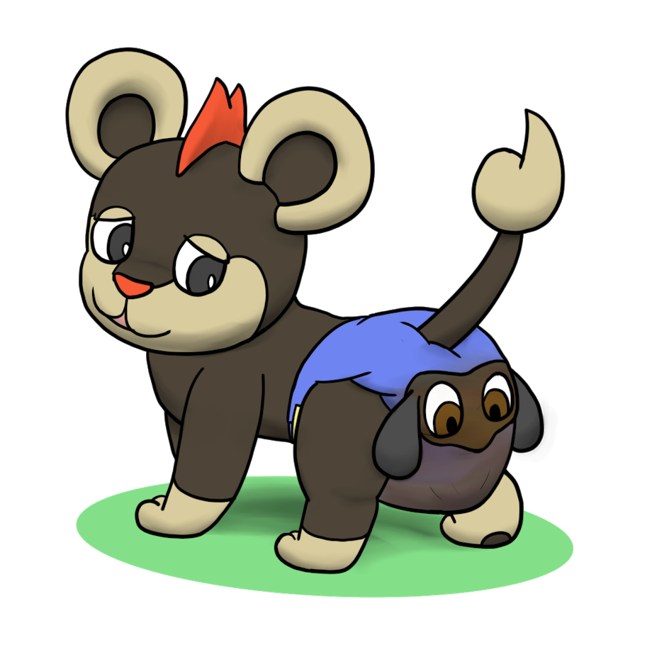 Hah, looks like somebody's not quite used to having a pokemon as his diaper. That's okay! I've learned from the best, so I can easily walk (or waddle) him through the process. No need to worry. I might be little, but I'm a professional diaper.