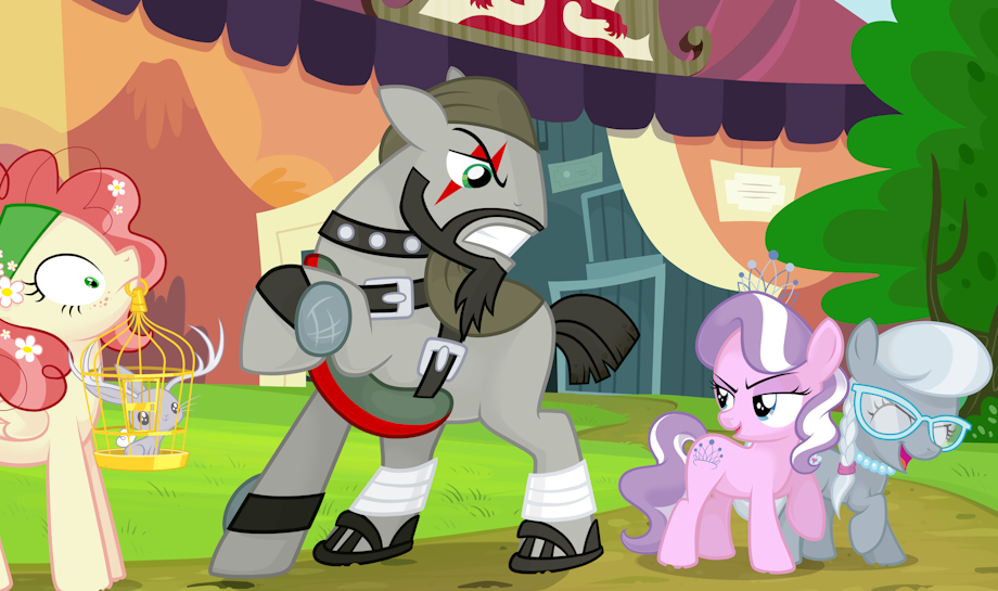 Beast Master 'bout to lay the smackdown on some rude fillies while Earth Angel watches in shock.
