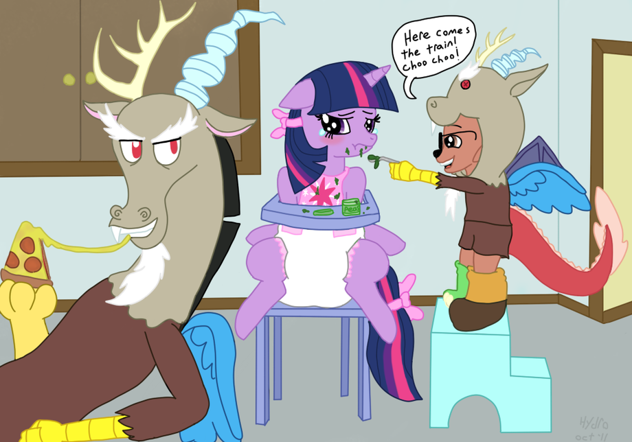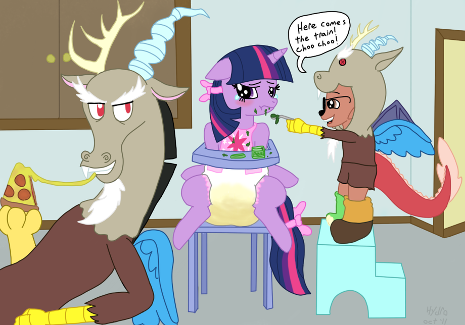 I think she'd rather have the pizza... I really love how this came out, and actually I really enjoyed doing this one too. I was really worried about drawing Discord but I'm pretty proud of how he turned out. I definitely need to draw him more! I ended up doing the clean version as a request, since it's so easy to do on this one.