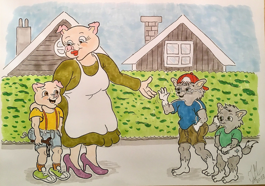 “Why hello little Kyle and Caiden!” greeted this older pig lady with a German accent as she waved and came over to them.