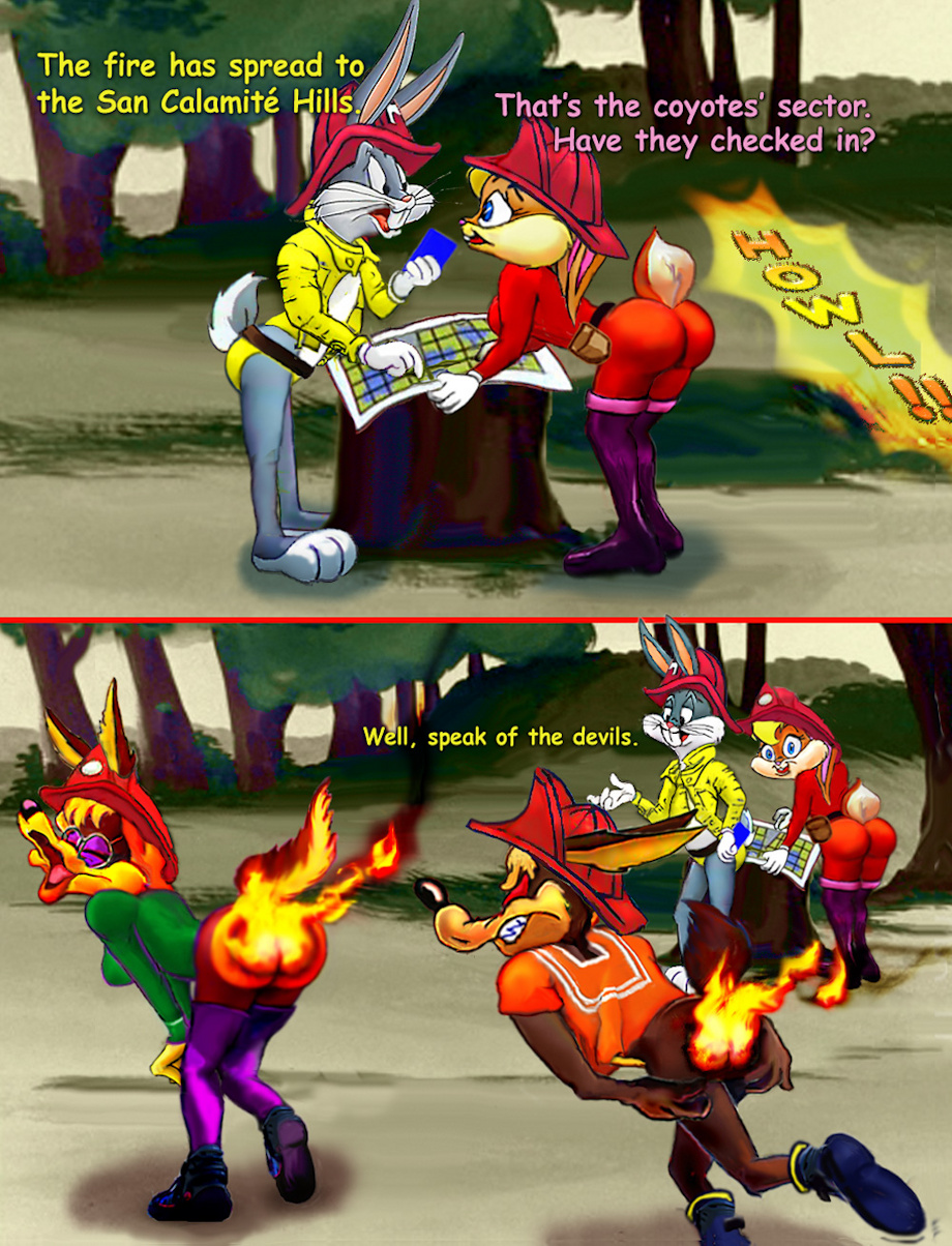When the firefighters catch fire, it's always embarrassing. (Lola is thinking: