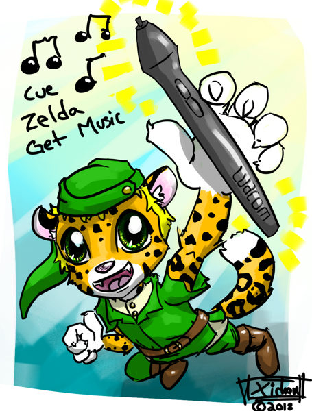 In the meantime, have some art of me, getting my wacom stylus, Zelda style. I was so thrilled by this that I've been drawing all day. Some real art will be incoming shortly. In the meantime, consider this my notice that I am back to work. I am taking requests and commissions, and after cleaning up and posting the sketches I did before this today, if I do not have a commission or request I may do a YCH raffle.
