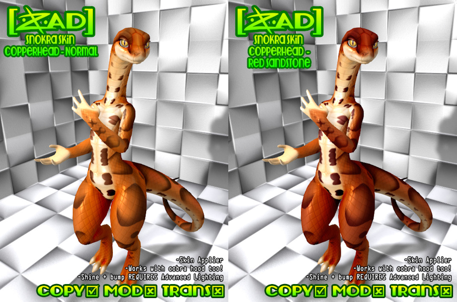 Some copperhead skins for the snokra! A partial-commission, released to the public! ^^
