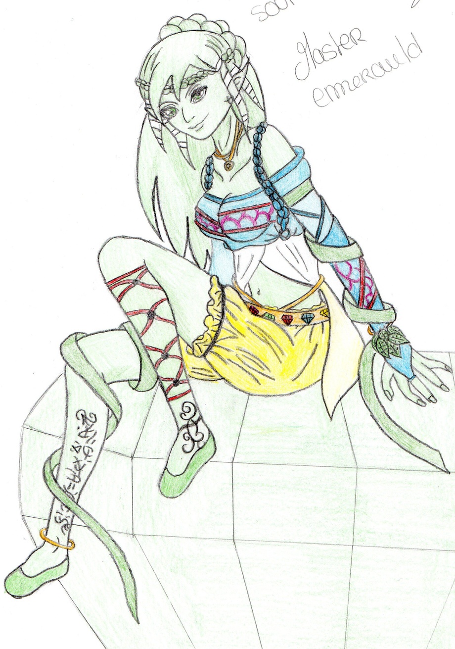 This is the soul of Master Emerauld ! That is why, her skin and hair are green like Master emerauld. And her clothes are the same as the Colours of the chaos emeralds. And I'm sorry for the bad quality but my scanner is bad too.