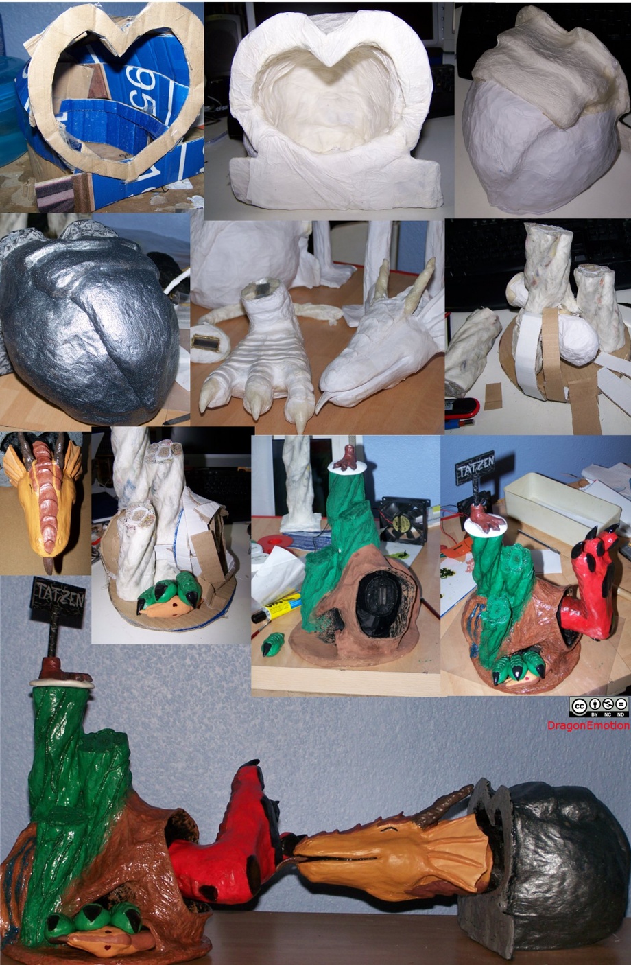 Its mostly made out of wire, printer-paper, kitchen tissue, cardboard and air hardening clay.