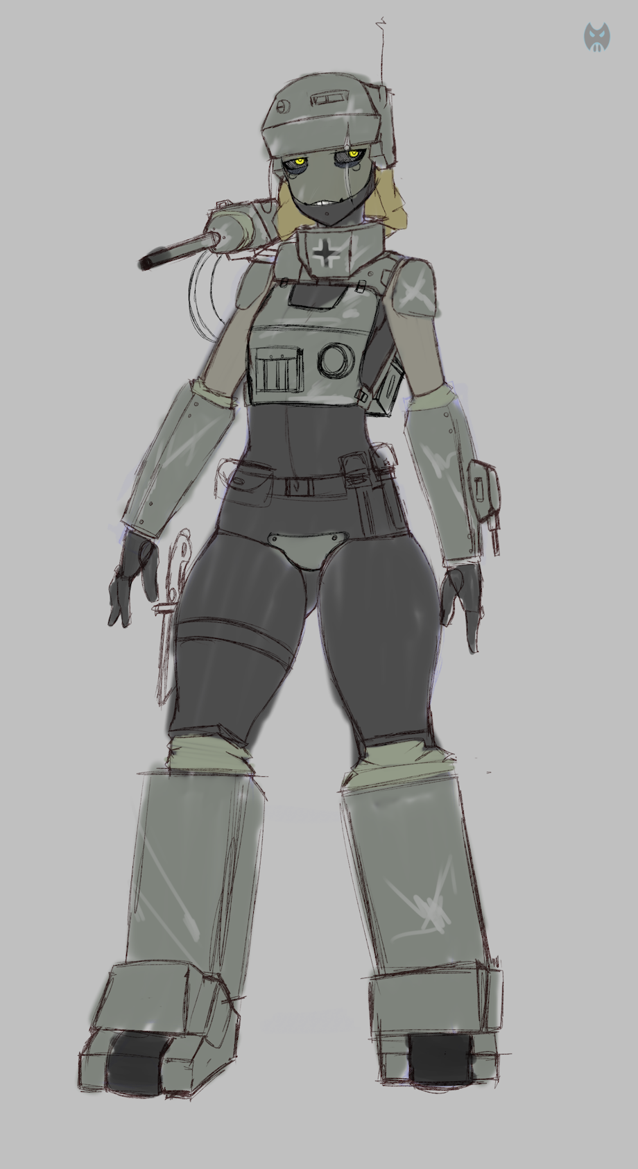 trying a new take on making me tanks Here is Alairca, the E25, im kinda indecisive with character design but i like how this is going, feels more like a tank... that you can still lewd.... if you can find her X3
