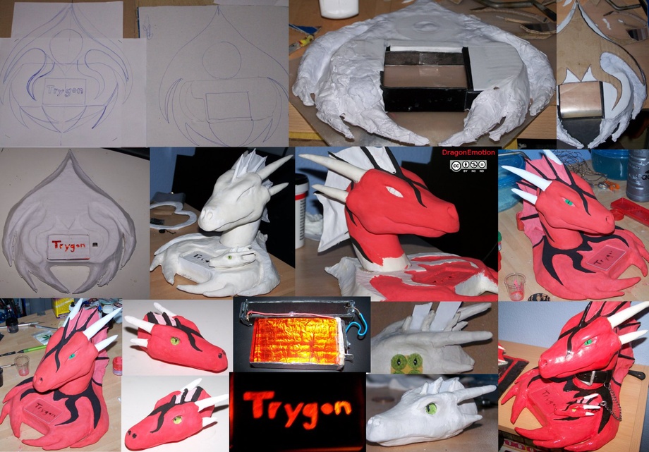The collar is made out of the leather-cover of a pocket diary. The collar clasp works but is a fake because the collar fastens with two power-magnets at the backsides. It was necessary because of the crest.