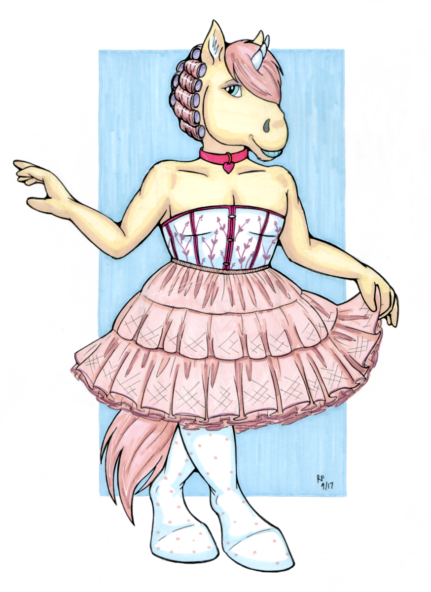 After his corset and stockings, Yuki puts on a fluffy pink petticoat! This is what gives Yuki's dresses that lovely poofy shape! Yuki doesn't leave home without it <3