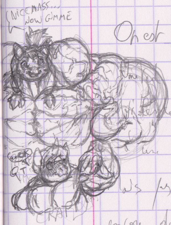 Sketchy sketchy, tiny drawing on the side of a notebook.