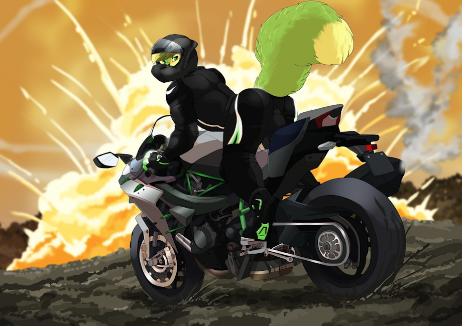 Explosions and doing nicely to poses on a beautiful Kawasaki H2R, which is great.