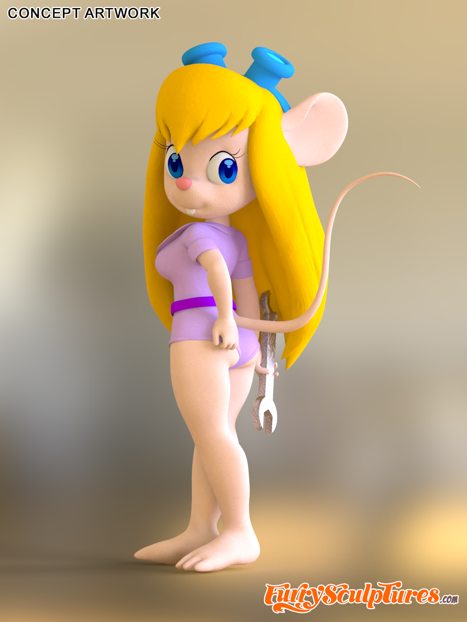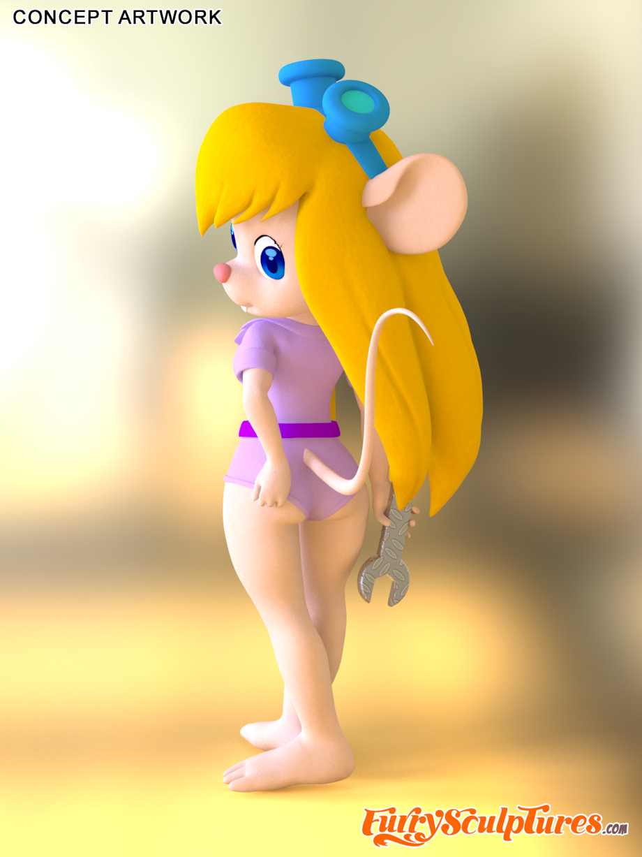 Kudos for making her wrench look like something made with in scale corrugated steel plate! :D Also don't often see her with true rodent teeth showing but I do like it! She was always one of my true favorite anthropomorphic characters! :D