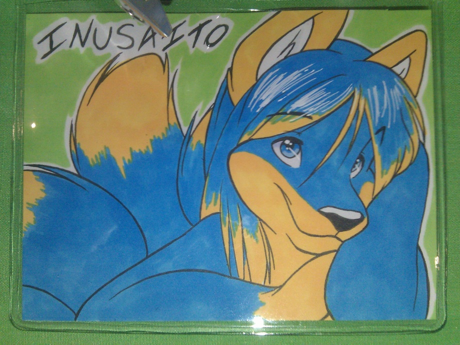 Badge done up for Inusaito at FurFright this year. Interesting fur colors, I enjoyed working on this one.