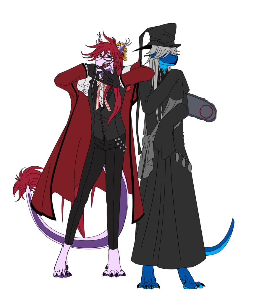 I know it's late but I was in the process of moving to my new house ^_^ So Here is me and mah Rheiga dressed as Grell and the Undertaker from Kuroshitsuji Techs - me as Grell Rheiga - Undertaker This is just the flats without the BG I will finish everything on it.... but I've been itching to post the flats