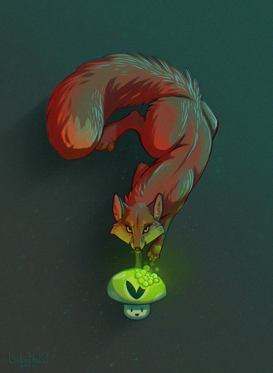 A little fox devouring a shroom that almost certainly can't be good for him. But still, a gesture of appreciation for all the hours keeping me company while doodling, and for reassuring me that reaching my 30s ain't so bad after all.