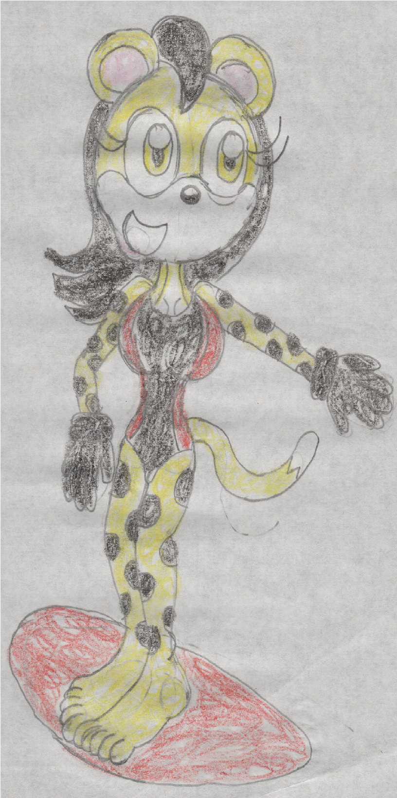 Felt like drawing Kathy the Cheetah surfing on a red surfboard.