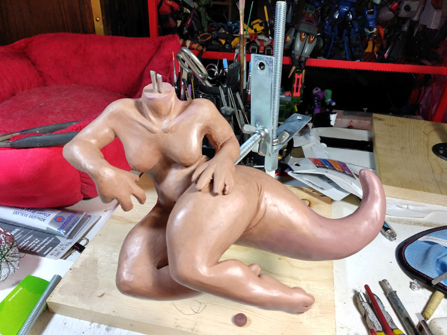 So, I’ve been struggling more with depression than usual this last year, which really is effecting my desire to draw, to the point where it’s just….well, gone (yes, I’m seeing doctors). But for some reason I got this wild itch to start sculpting. I am NOT a sculptor…I think I’ve sculpted about three or four things in my life and they’ve all been little items or what not. But here I was, building an armature for Quill of the picture I just did of her by the forge. Everything was coming along swimmingly, thought it was a good first full body piece. Her head was going to be sculpted as a separate piece and added later due to complexity, and that mitten of a hand is unfinished. I ran out of the red Sculpy I had, which had been setting in a drawer for…I dunno…ten years? And grabbed some other Sculpy and tried to match it up to the current stuff. Funny thing was, I couldn’t get the color or translucency to match. Texture was a little different too…. waitaminute….something is NOT right. Per Squikbats suggestion I took a little bit of the red Sculpy and what I KNEW to be Sculpy and put them in the toaster oven to bake. After the appropriate amount of time and temp I pulled them from the oven and the known Sculpy was nice and solid….but the red stuff….the red stuff just squished, like it’d never been in the heat at all. Fuck me running sideways…the red stuff ain’t Sculpy, it’s TRADITIONAL CLAY.