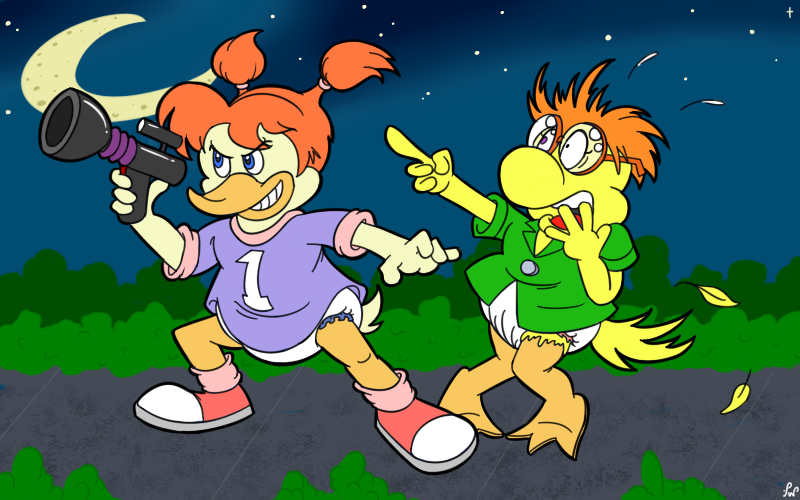 This is a commission for Yosh-E-O. I wasn't really sure why he wanted to pair these two characters, but now that I've drawn them, I think I get it... Winrey's got a similar color scheme. Or maybe he just likes Darkwing Duck... that's also a distinct possibility.