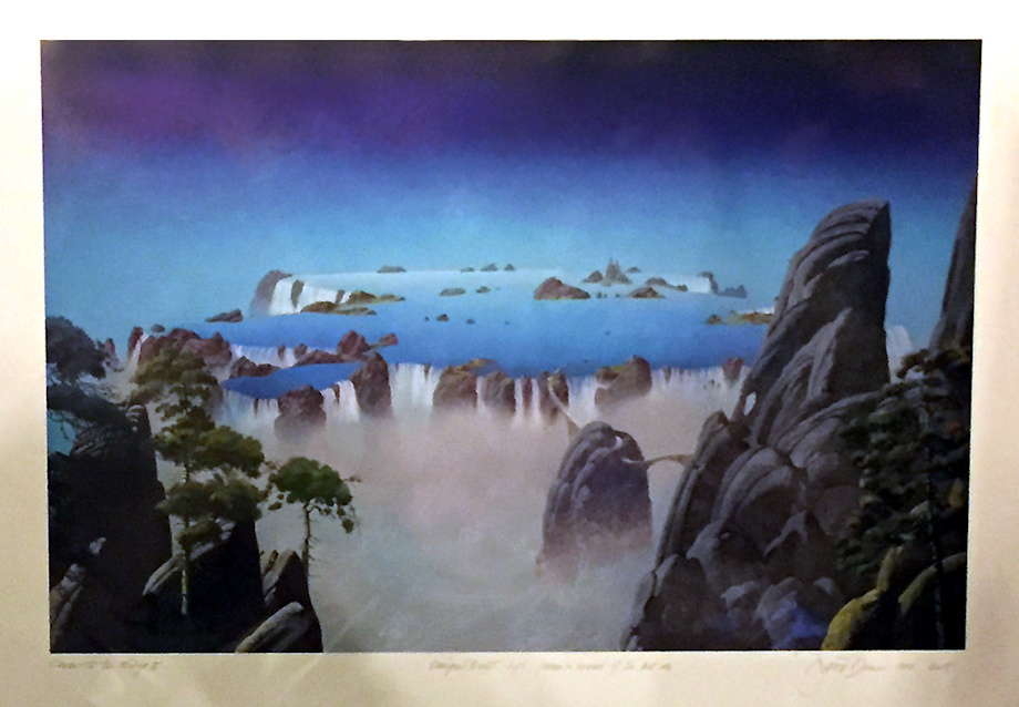 At the Yes 50th Anniversary concert in Staten Island last Sunday (7/15/18), I had the pleasure of meeting one of my graphic arts heroes from back in the day, Roger Dean, who made those iconic album covers for the band and who was instrumental (heh!) in establishing the Yes brand (or was it the other way around?). Mr. Dean had limited edition prints in the lobby and, not being made out of money, I didn't buy one, although I would have made an exception for a print of "Relayer," (the one with the snakes) which is my absolute favorite in his catalog. It wasn't there, and when I asked him, he said it should be in the market near the end of this year. But his do-over of the gatefold to "Close to the Edge" was there and I took a pic. I remember reading years back that this was the one piece he wanted to revisit and, now, here it is. So cool for this graphic art laddie to meet one of his mentors. Still holding out for "Relayer," though.
