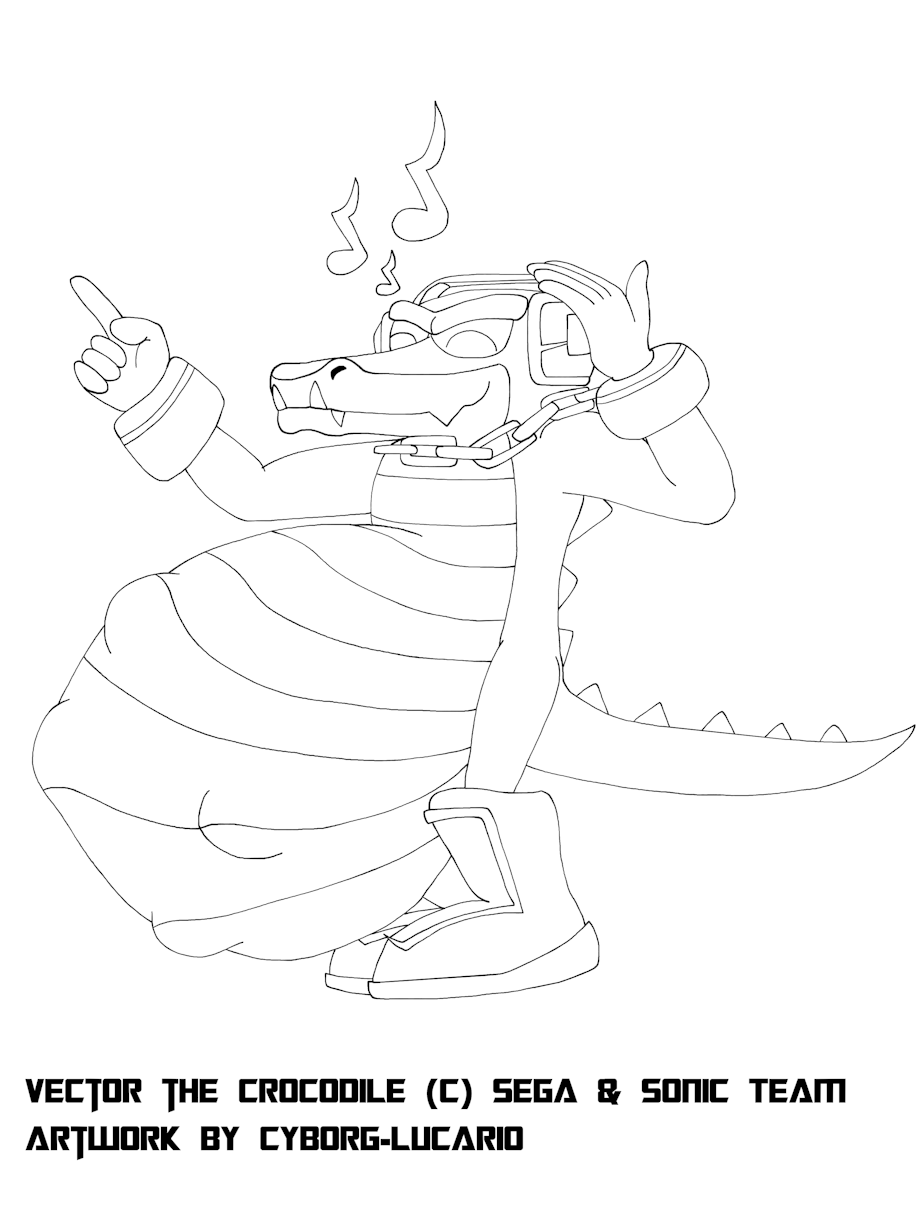 Vector the Crocodile (c) Sega and Sonic Team Brais belongs to himself Artwork is made by me, Cyborg-Lucario