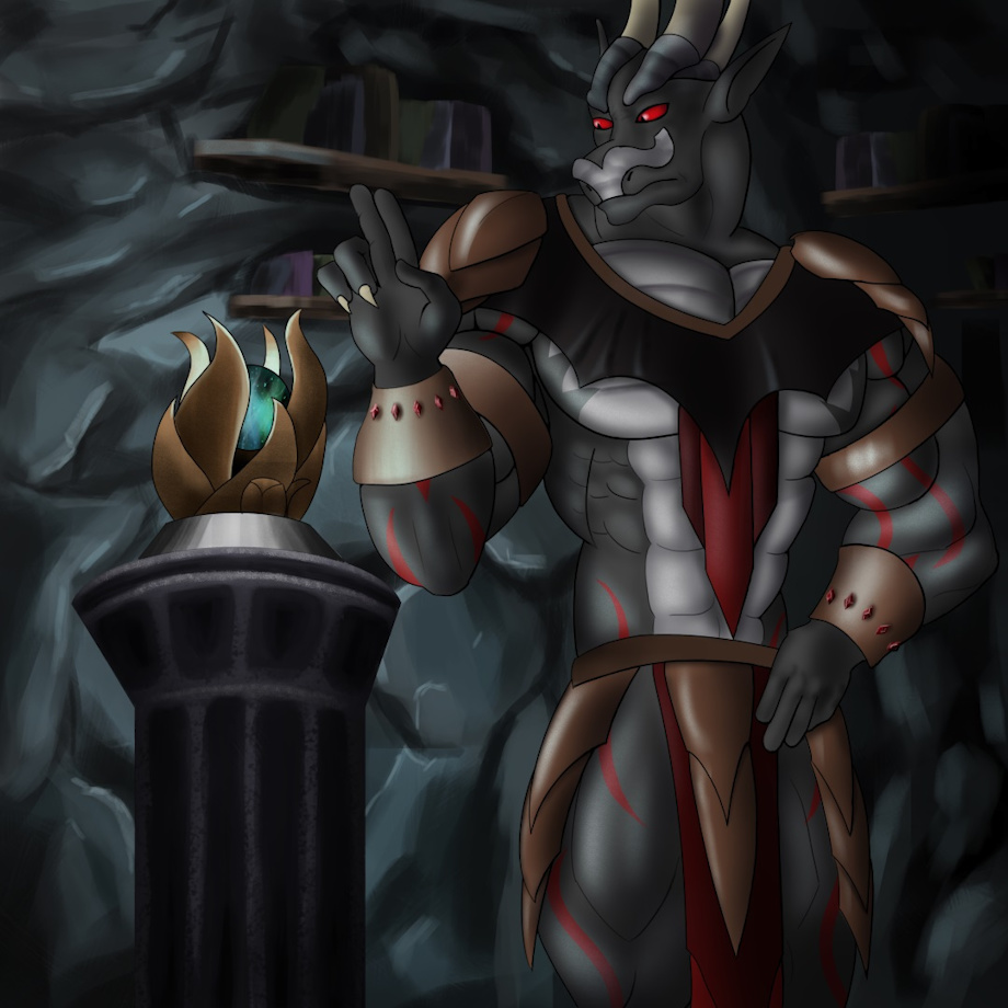 Korozar often recovers and studies anything magical in nature, retreating to his cave to study his finds in peace. Surely this one will be used for only the most wholesome of purposes!