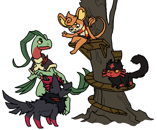 Tecsinom's other team, Stovefire! Zef was always interesting, calm and collected in most situations. Lavender (oh um, I mean uh "Havoc") was a funny partner - suspicious even for a thief, but rightfully so given Zef's strange nature. I'm still learning about Phusi and Axton but if they were friends with the little monkey even before their introduction then I'd imagine they're as quirky and adorable as she is!