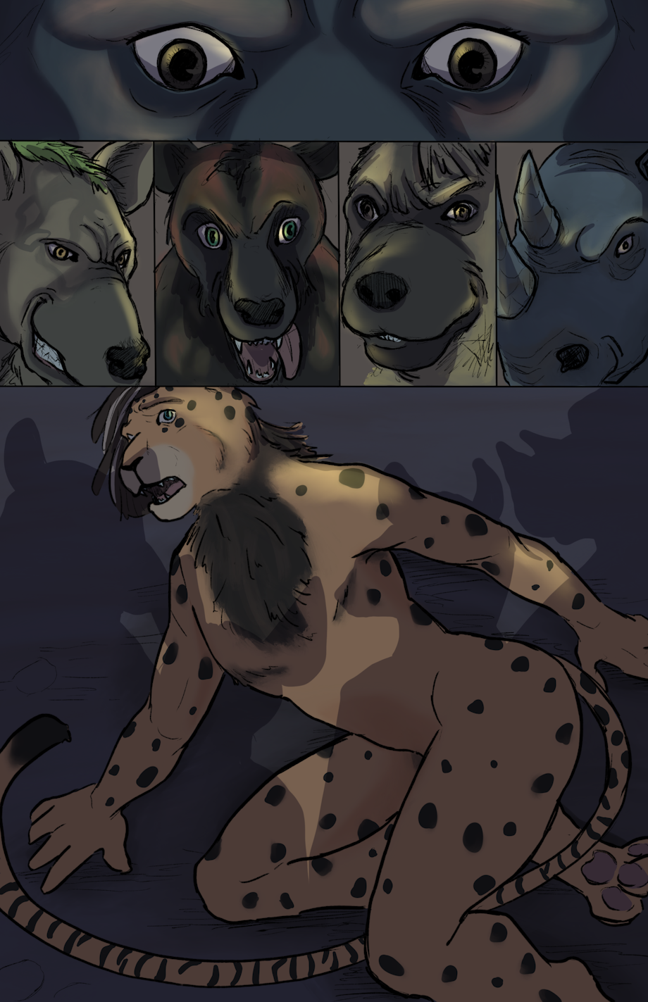 4 hungry animals and one defenseless spotted kitten, ohh my...
