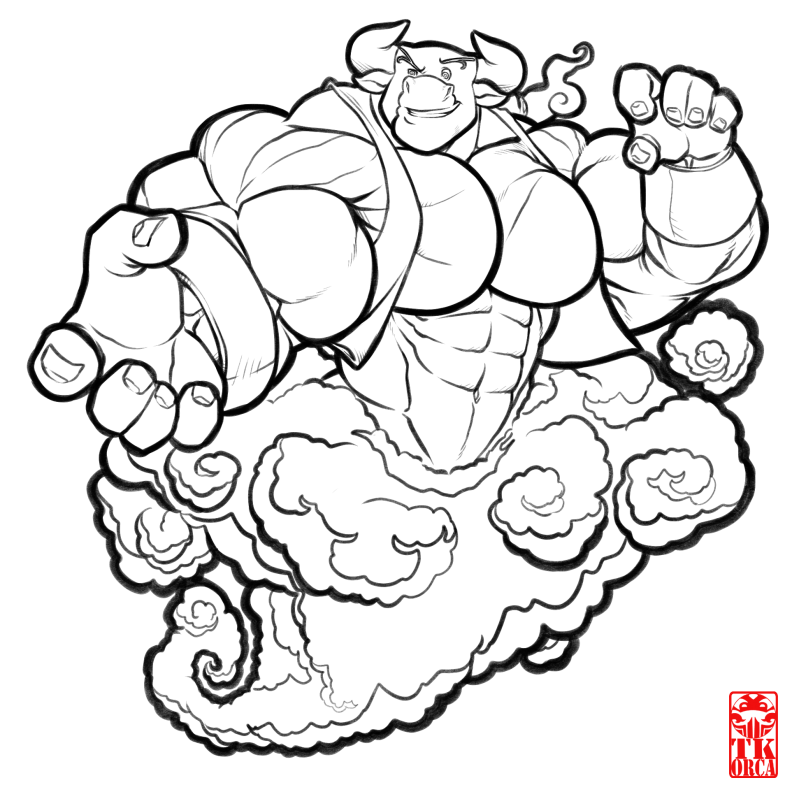 A stream commission done for Valeyard of his genie bull character. Hes using his powers to hypnotize his current master, who knows what he has in mind.