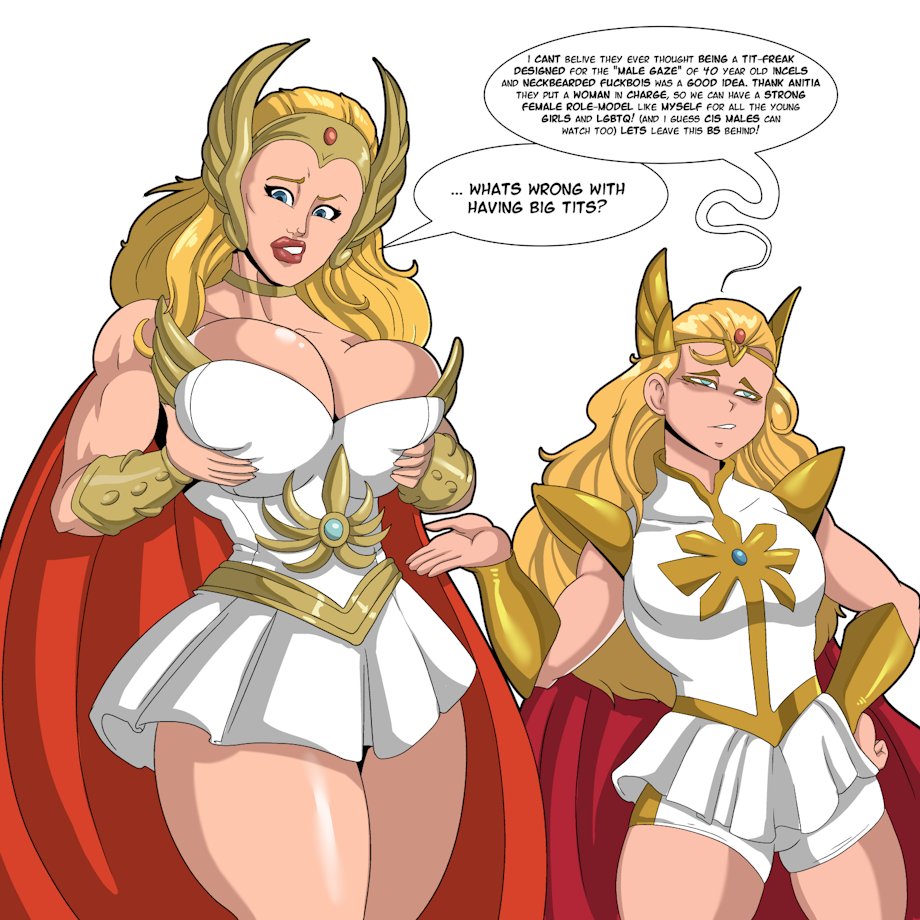 Now that the shows out i dont really mind that she doesnt have big tits. Doesnt really make sense for a 13-16 year old to have DDs lol, but i would prefer if the she-ra costume was better! Adora actually looks cute in the new show just not as barbieish.