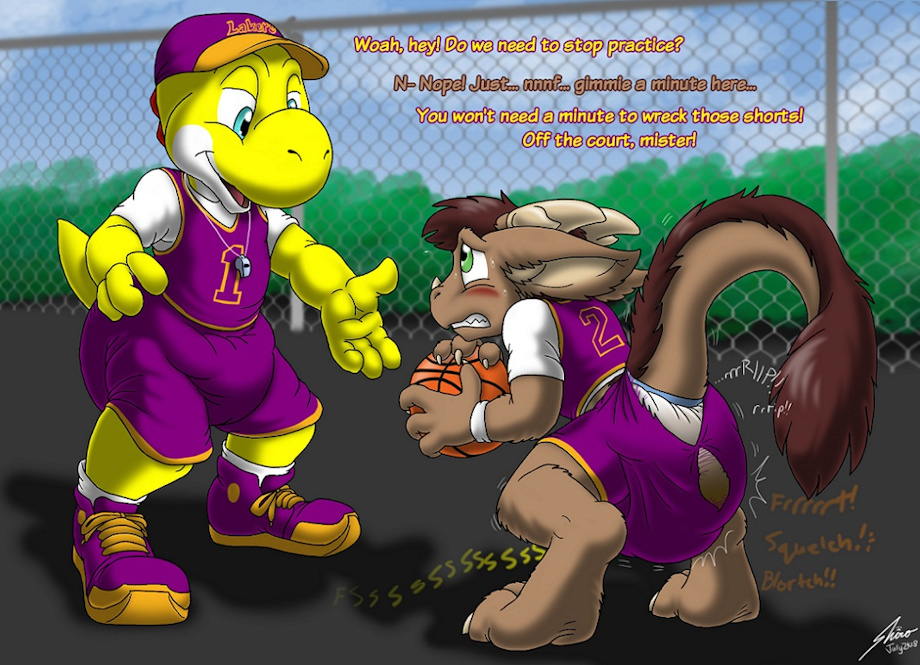 Showtime and Starbuck at practice, with the fluffdragon heavily filling his seat. Seems like the coach is going to need to change his player... and give him a new pair of shorts.