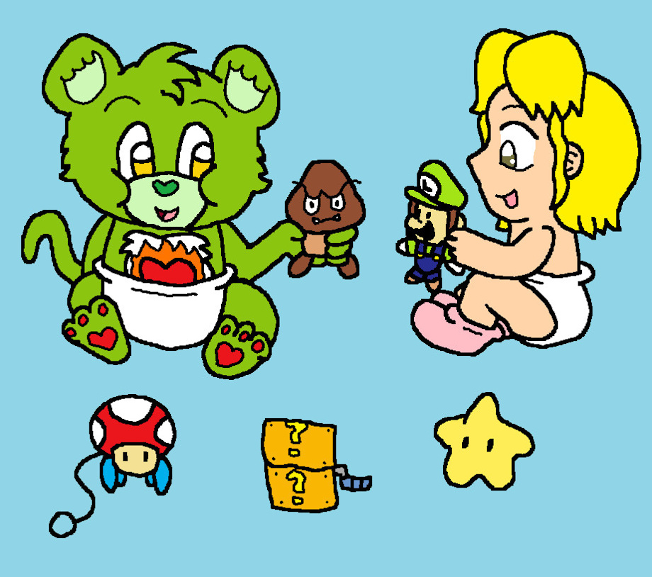 Another pic done in 2009 that was an art trade between me and Heartiful on DeviantArt (https://www.deviantart.com/heartiful) involving me and her character Sara playing with some cute little Nintendo themed toys.